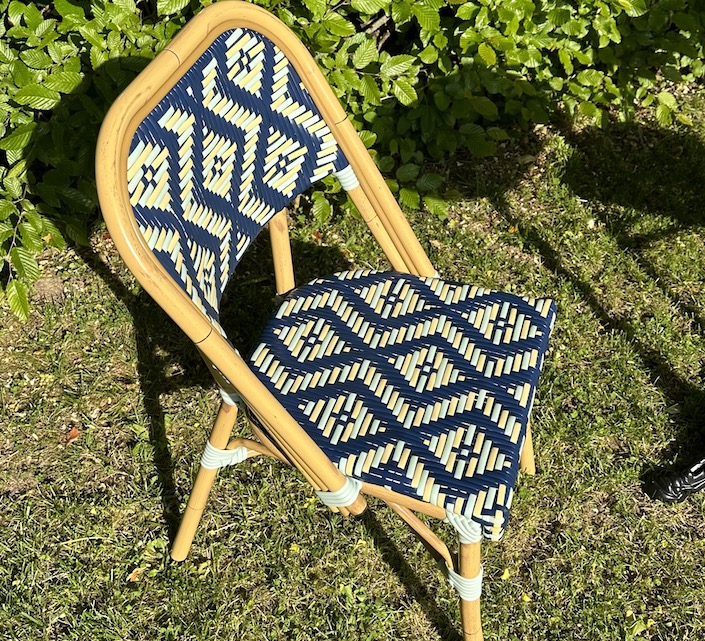 Une chaise bistrot aluminium parisienne bleue et verte anis très confortable. A la fois vintage et complétement tendance, cette chaise de bistrot tressée est la star incontournable de votre terrasse cet été. Souple, le cannage tressé main vous procurera un incroyable confort. Ses matériaux sont remarquables pour leur solidité et légèreté. Excellente résistance aux agressions climatiques : idéal pour le bord de mer. Cette chaise bistrot rotin conçue pour une utilisation extérieure peut aussi convenir en intérieur.