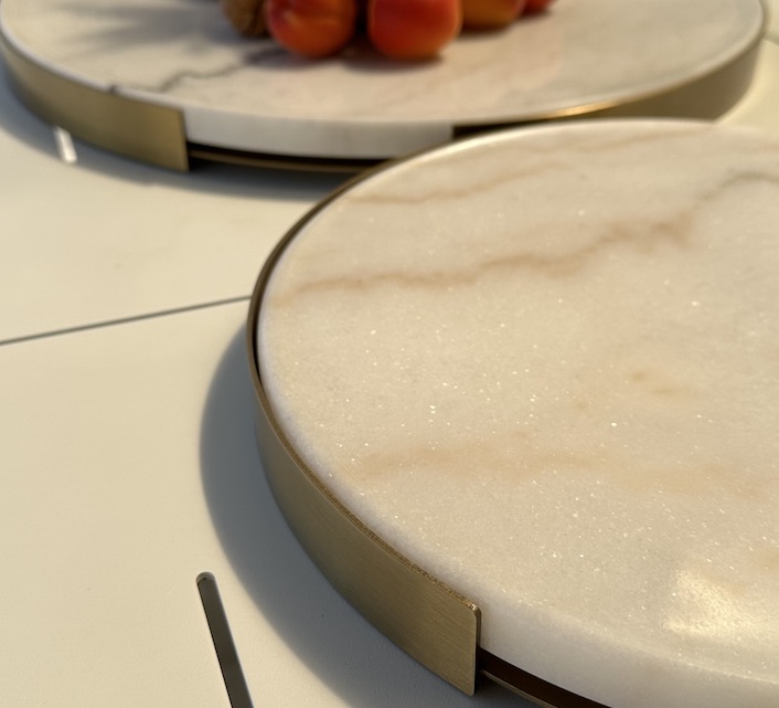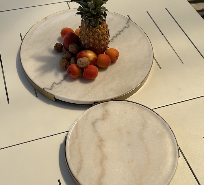 Plateau de décoration en Marbre Blanc et laiton D45cm