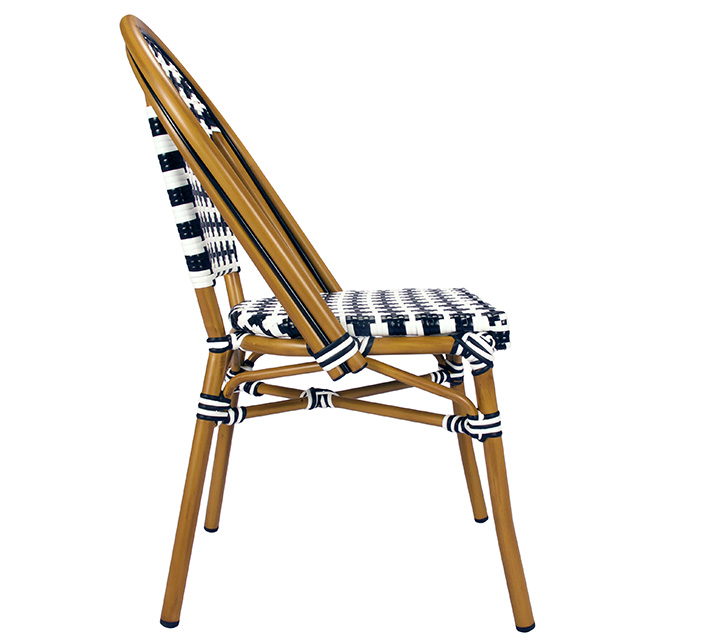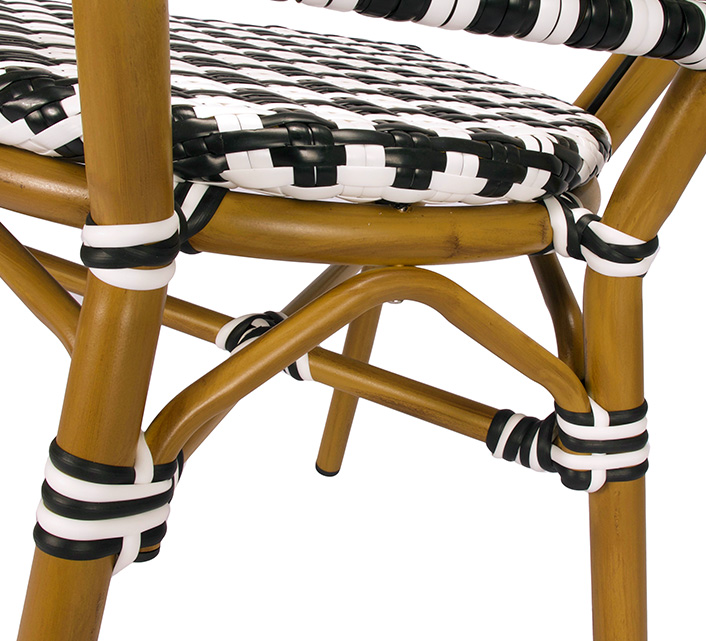 Une chaise bistrot aluminium parisienne noire et blanche très confortable. A la fois vintage et complétement tendance, cette chaise de bistrot tressée est la star incontournable de votre terrasse cet été. Souple, le cannage tressé main vous procurera un incroyable confort. Ses matériaux sont remarquables pour leur solidité et légèreté. Excellente résistance aux agressions climatiques : idéal pour le bord de mer. Cette chaise bistrot rotin conçue pour une utilisation extérieure peut aussi convenir en intérieur.