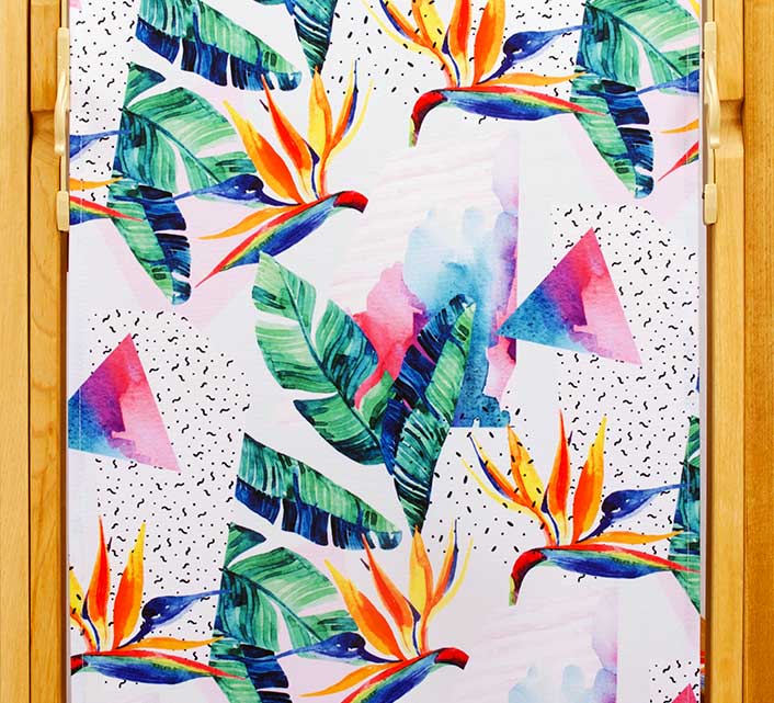 Complètement déco, cette chilienne bois motif géométrique abstrait floral tropical s'invite sur la terrasse de votre jardin pour y créer une ambiance tropicale. Symbole de farniente, cette chilienne bois inclinable 3 positions est le compagnon idéal pour vos siestes cet été. On aime sa structure en acacia et sa toile 100% polyester, qui résiste aux intempéries. Ne cherchez plus, son motif original ne se trouve que chez Salon d’été !