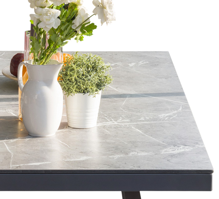 Cette table de jardin rectangulaire motif marbre gris est idéale pour une utilisation en extérieur. Son plateau stratifié HPL lui garantit une résistance aux UV, aux chocs, à l'usure et à la chaleur (maximum 180°C). Son pied en aluminium, traité anti-corrosion, pourra rester en extérieur pour un usage intensif tout le long de l'année. Très facile d'entretien, cette table de jardin effet marbre Blanc est la table qu'il vous faut.