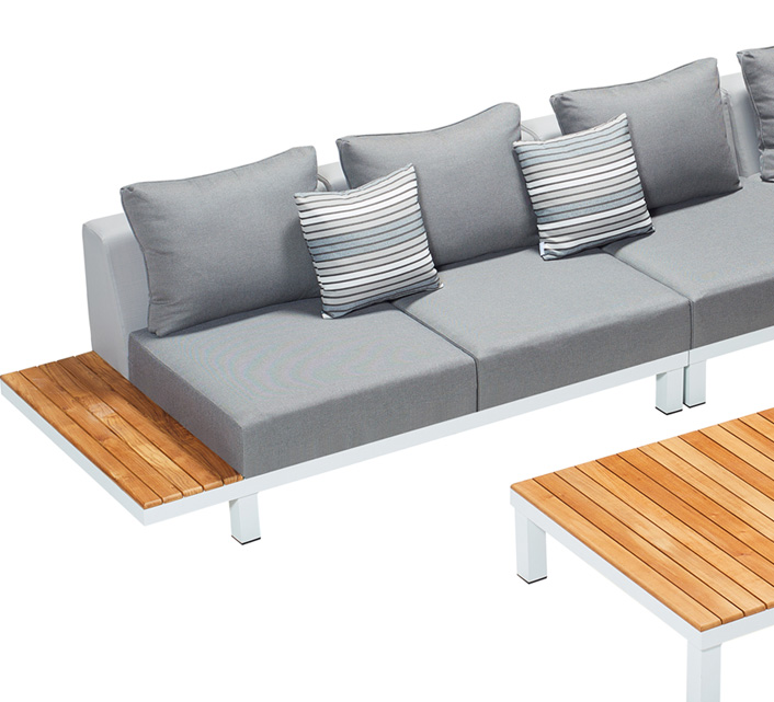 Ce salon de jardin très contemporain peut s'intégrer dans différents types d'environnement en extérieur comme en intérieur.