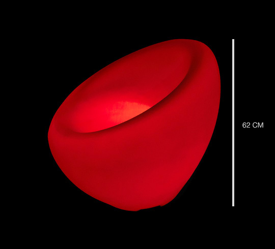 Ce fauteuil lumineux LED extérieur 62 cm sans fil très original crée sur votre terrasse une ambiance chic le jour, magique la nuit. Ce fauteuil lumineux outdoor résiste aux intempéries car étanche aux projections d'eau. Pas besoin de chercher une prise électrique à proximité ! Ce fauteuil lumineux sur batterie passe du jardin à l'intérieur de la maison en évitant de se prendre les pieds dans les câbles électriques.