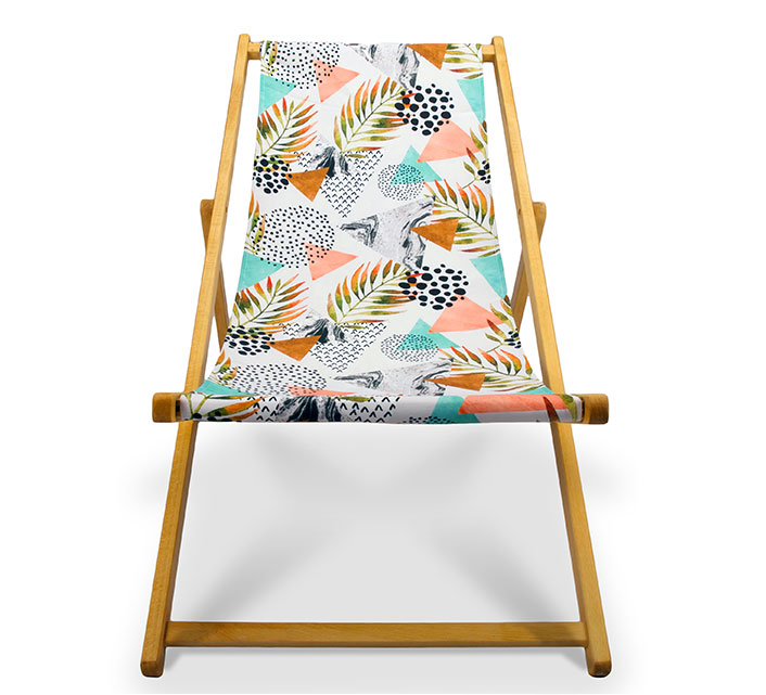 Complètement déco, cette chilienne bois motif géométrique abstrait vert rose s'invite sur la terrasse de votre jardin pour y créer une ambiance tropicale. Symbole de farniente, cette chilienne bois inclinable 3 positions est le compagnon idéal pour vos siestes cet été. On aime sa structure en acacia et sa toile 100% polyester, qui résiste aux intempéries. Ne cherchez plus, son motif original ne se trouve que chez Salon d’été !