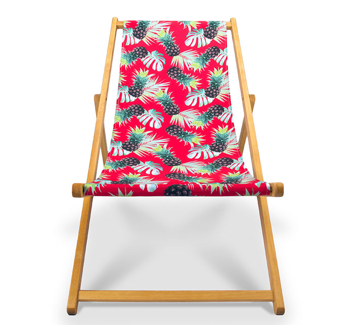 Complétement déco, cette chilienne bois couleur rouge motif ananas s'invite sur votre terrasse ou dans votre jardin pour y créer une ambiance tropicale. Prédestinée au farniente, cette chilienne bois inclinable en 3 positions est le compagnon idéal pour vos siestes cet été. On aime sa structure en acacia et sa toile 100% polyester, donc imputrescible. Ne cherchez plus, son motif original ne se trouve que chez Salon d’été !