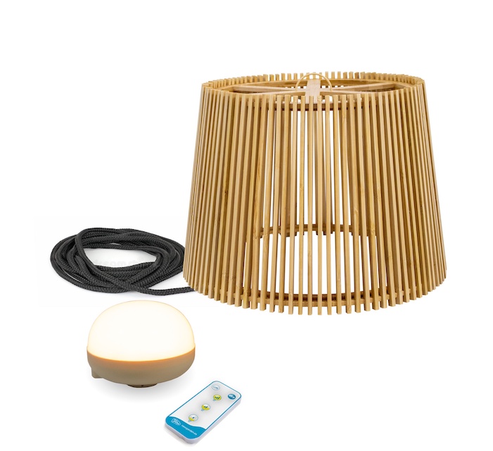 • Livré avec suspension, corde, bloc lumineux et télécommande