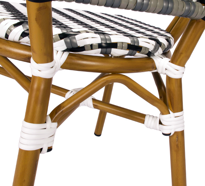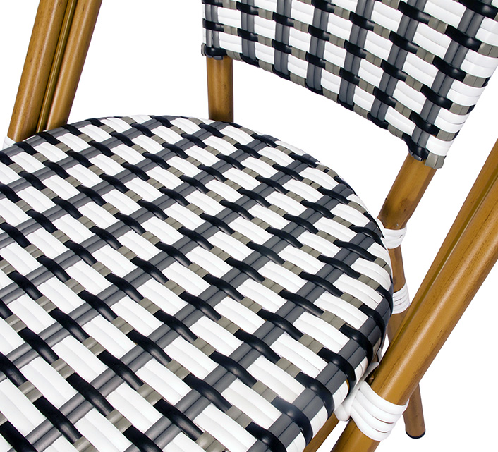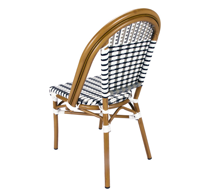 Une chaise bistrot aluminium parisienne noire et blanche très confortable. A la fois vintage et complétement tendance, cette chaise de bistrot tressée est la star incontournable de votre terrasse cet été. Souple, le cannage tressé main vous procurera un incroyable confort. Ses matériaux sont remarquables pour leur solidité et légèreté. Excellente résistance aux agressions climatiques : idéal pour le bord de mer. Cette chaise bistrot rotin conçue pour une utilisation extérieure peut aussi convenir en intérieur.