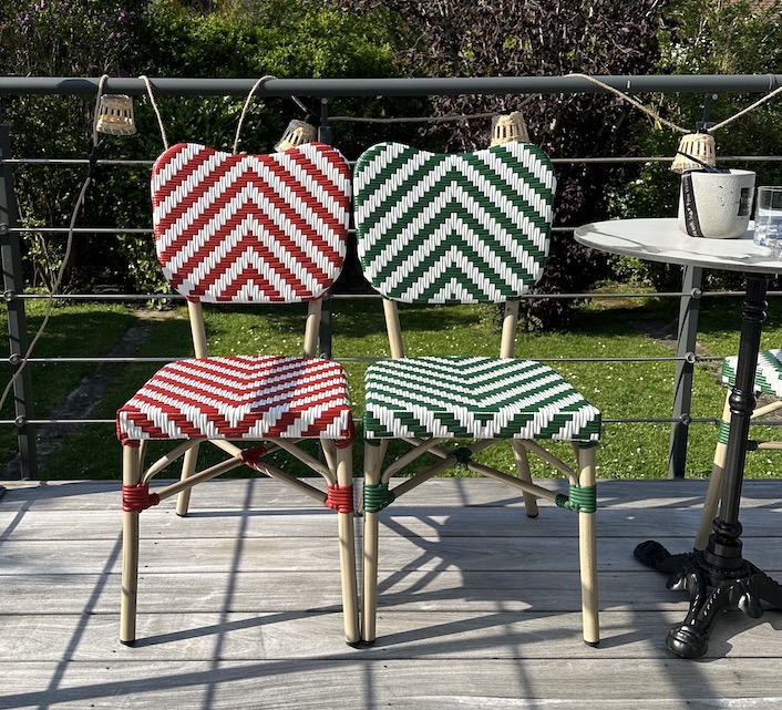 Une chaise bistrot parisienne aluminium verte et blanche très confortable. A la fois vintage et complétement tendance, cette chaise de bistrot tressée est la star incontournable de votre terrasse cet été. Souple, le cannage tressé main vous procurera un incroyable confort. Ses matériaux sont remarquables pour leur solidité et légèreté. Excellente résistance aux agressions climatiques : idéal pour le bord de mer. Cette chaise bistrot rotin conçue pour une utilisation extérieure peut aussi convenir en intérieur.