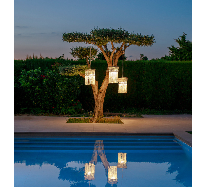 • Livré avec suspension, corde, bloc lumineux et télécommande