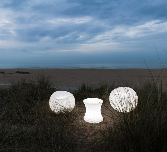 Astuce : Associez vos pouf lumineux avec des cubes lumineux en guise de table-basse disponible sur notre site. Fonctionne aussi sur secteur en intérieur. Une seule télécommande suffit pour tous les piloter.