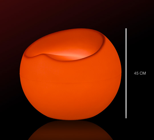 Ce pouf ball chair lumineux LED 45 cm sans fil très original crée sur votre terrasse une ambiance chic le jour, magique la nuit. Ce pouf ball chair lumineux résiste aux intempéries car étanche aux projections d'eau. Pas besoin de chercher une prise électrique ! Ce pouf lumineux sur batterie passe du jardin à l'intérieur de la maison en clin d’œil. On oublie toute contraintes de distance et de câbles électriques.