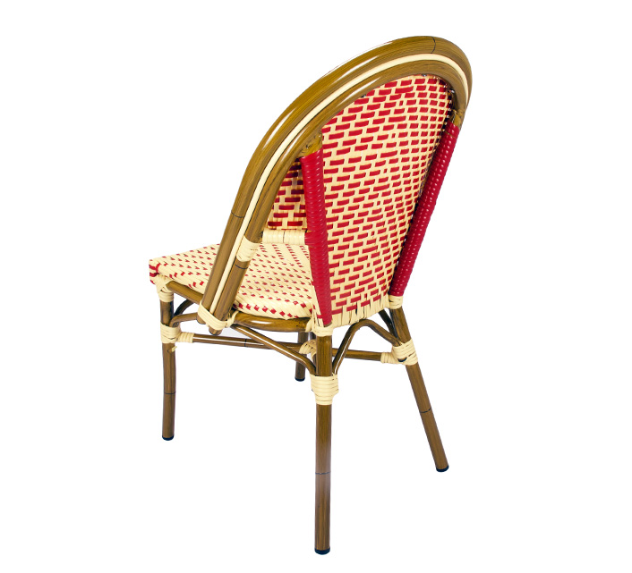 Une chaise bistrot aluminium parisienne beige et rouge très confortable. A la fois vintage et complétement tendance, cette chaise de bistrot tressée est la star incontournable de votre terrasse cet été. Souple, le cannage tressé main vous procurera un incroyable confort. Ses matériaux sont remarquables pour leur solidité et légèreté. Excellente résistance aux agressions climatiques : idéal pour le bord de mer. Cette chaise bistrot rotin conçue pour une utilisation extérieure peut aussi convenir en intérieur.