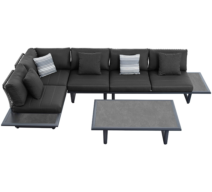Salon de Jardin Haut de Gamme d'Angle 5 places Sophia Noir Anthracite