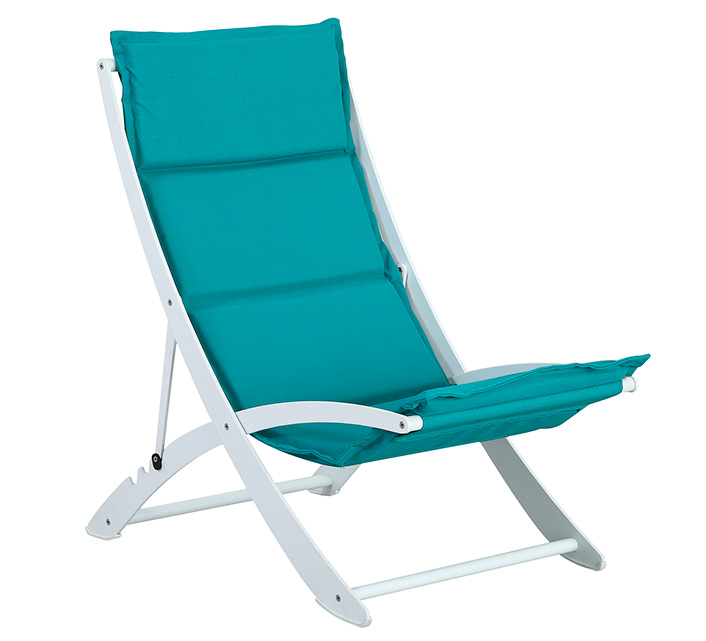 Chilienne pliante aluminium haut de gamme bleu turquoise. Assise matelassée textilène pour votre plus grand confort. Les matières de cette chaise pliante aluminium utilisées dans l'industrie nautique sont remarquables pour leur solidité/légèreté, et garantissent une excellente résistance aux agressions climatiques : tout à fait idéal pour le bord de mer. Cette chaise de jardin étant conçue pour une utilisation extérieure peut aussi convenir en intérieur.