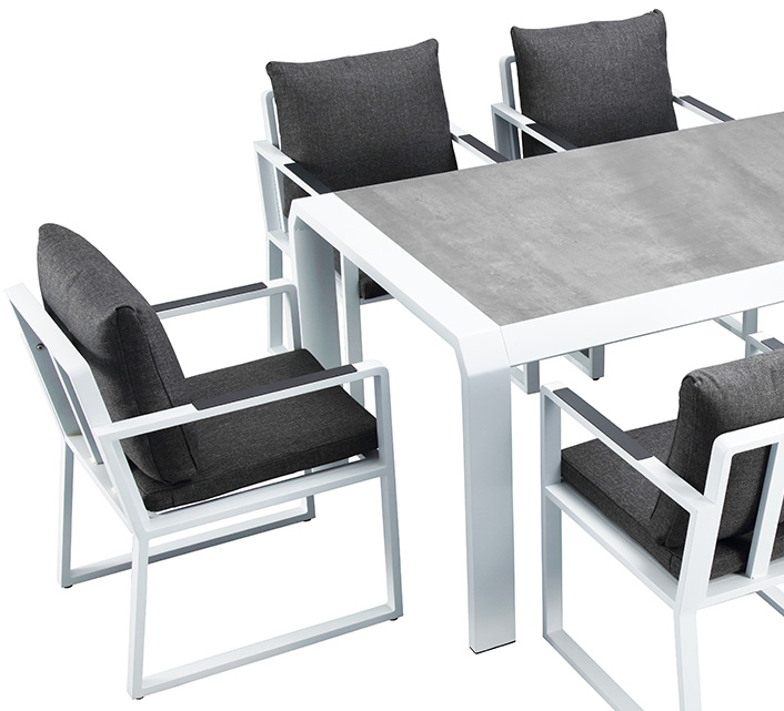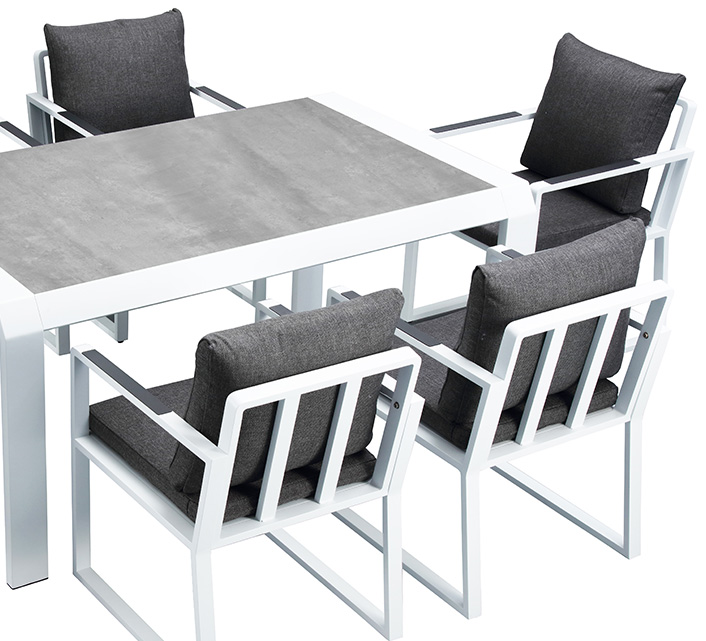 Le mobilier est très robuste, résistant aux intempéries et aux UV et très facile à nettoyer.