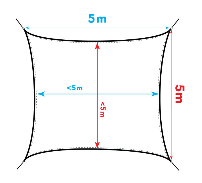 La mesure des voiles est indiquée d'anneau à anneau. Nous vous rappelons que les bords étant incurvés vers le centre, la largeur des voiles diminue de 50 à 80 cm.
