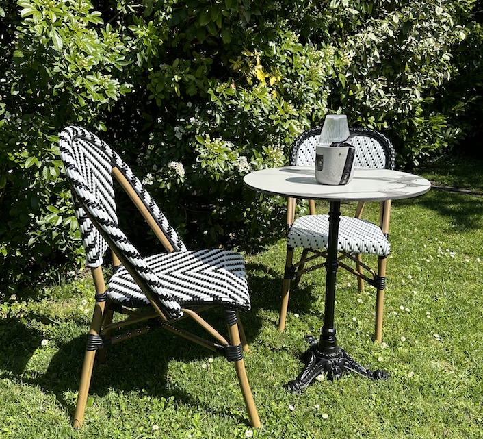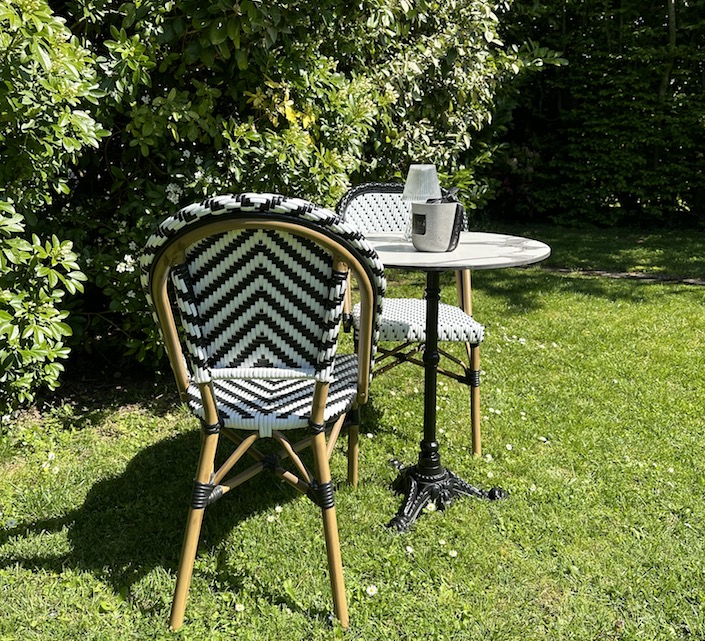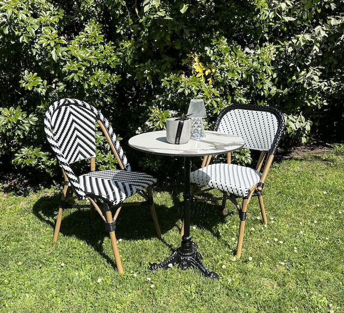 Une chaise bistrot aluminium parisienne noire et blanche très confortable. A la fois vintage et complétement tendance, cette chaise de bistrot tressée est la star incontournable de votre terrasse cet été. Souple, le cannage tressé main vous procurera un incroyable confort. Ses matériaux sont remarquables pour leur solidité et légèreté. Excellente résistance aux agressions climatiques : idéal pour le bord de mer. Cette chaise bistrot rotin conçue pour une utilisation extérieure peut aussi convenir en intérieur.