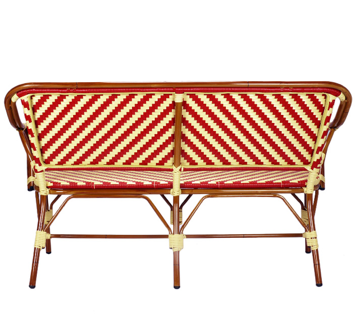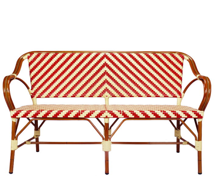 Une banquette bistrot parisienne polyrotin rouge et beige très confortable. A la fois vintage et complétement tendance, cette banquette style bistrot est la star incontournable de votre terrasse cet été. Souple, la résine tressée main de cette chaise vous procurera un incroyable confort. Ses matériaux sont remarquables pour leur solidité et légèreté. Excellente résistance aux agressions climatiques : idéal pour le bord de mer. Cette banquette poly rotin conçue pour une utilisation extérieure peut aussi convenir en intérieur.