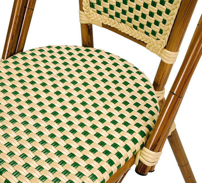 Une chaise bistrot aluminium parisienne beige et verte très confortable. A la fois vintage et complétement tendance, cette chaise de bistrot tressée est la star incontournable de votre terrasse cet été. Souple, le cannage tressé main vous procurera un incroyable confort. Ses matériaux sont remarquables pour leur solidité et légèreté. Excellente résistance aux agressions climatiques : idéal pour le bord de mer. Cette chaise bistrot rotin conçue pour une utilisation extérieure peut aussi convenir en intérieur.