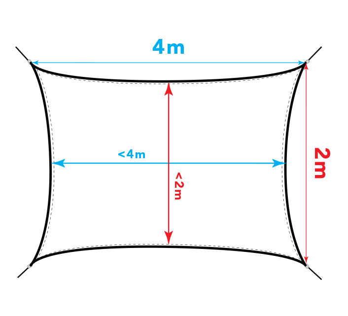 La mesure des voiles est indiquée d'anneau à anneau. Nous vous rappelons que les bords étant incurvés vers le centre, la largeur des voiles diminue de 50 à 80 cm.