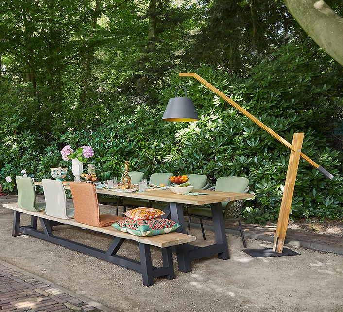 Nous utilisons uniquement des matériaux durables, faciles à nettoyer et résistants aux intempéries tels que l'aluminium et le teck. Les matériaux naturels peuvent se décolorer avec le temps, ce qui fait partie des propriétés du produit. Malgré le fait que tous les produits sont conçus pour être à l'extérieur toute l'année, il est préférable de les garder à l'intérieur lorsque vous ne les utilisez pas. Une pièce sèche non chauffée suffit.