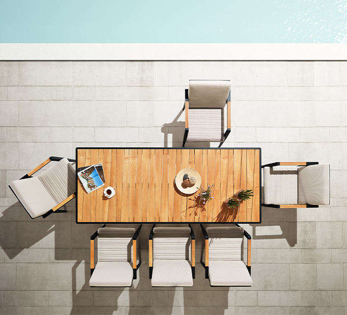 Le mobilier est très robuste, résistant aux intempéries et aux UV et très facile à nettoyer.