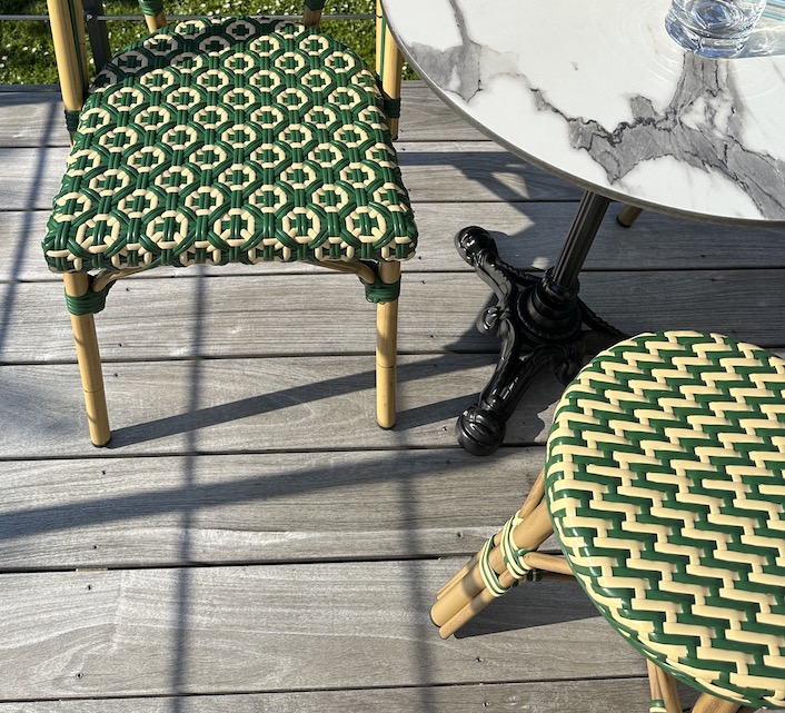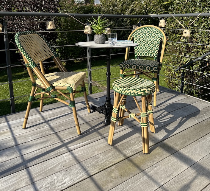 Nos chaises bistrot sont entièrement en aluminium et résistent parfaitement à tout type d'intempérie (pluie, froid, neige, bord de mer, soleil et lune). Toutes nos chaises peuvent rester en extérieur toute l'année. En milieu marin et bord de mer, nous vous recommandons fortement l'utilisation de mobilier entièrement en aluminium qui ne sera pas sujet à la corrosion.